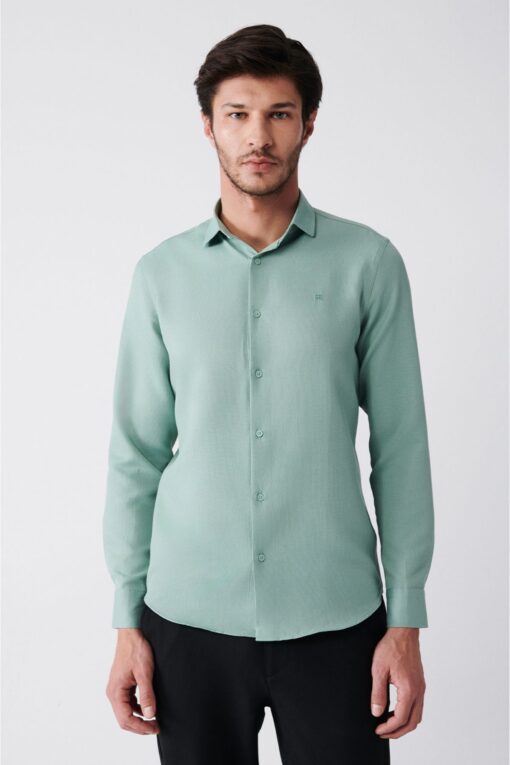 Avva Erkek Yeşil Kolay Ütülenebilir Gofreli Pamuklu Gömlek E002030