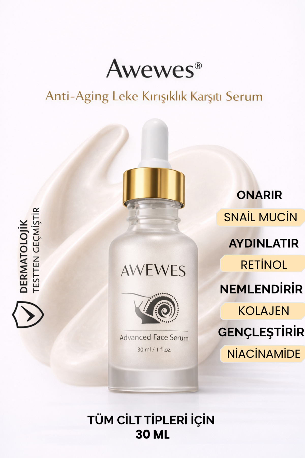 awewes Yaşlanma & Leke Karşıtı Ton Eşitleyici Salyangoz özlü- Niacinamide - Panthenol Yüz Serumu 30 ML ürünü ucuz fiyat, hızlı kargo imkanı ile hemen sitemizden sipariş verin.