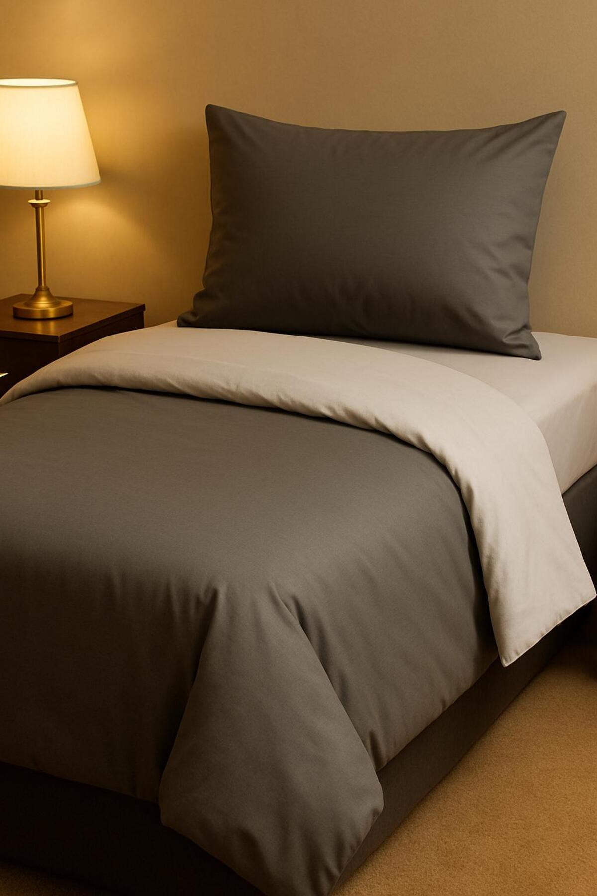 Lotusline Home Minikaro Füme Tek Kişilik Pamuklu Nevresim Seti Çift Taraflı