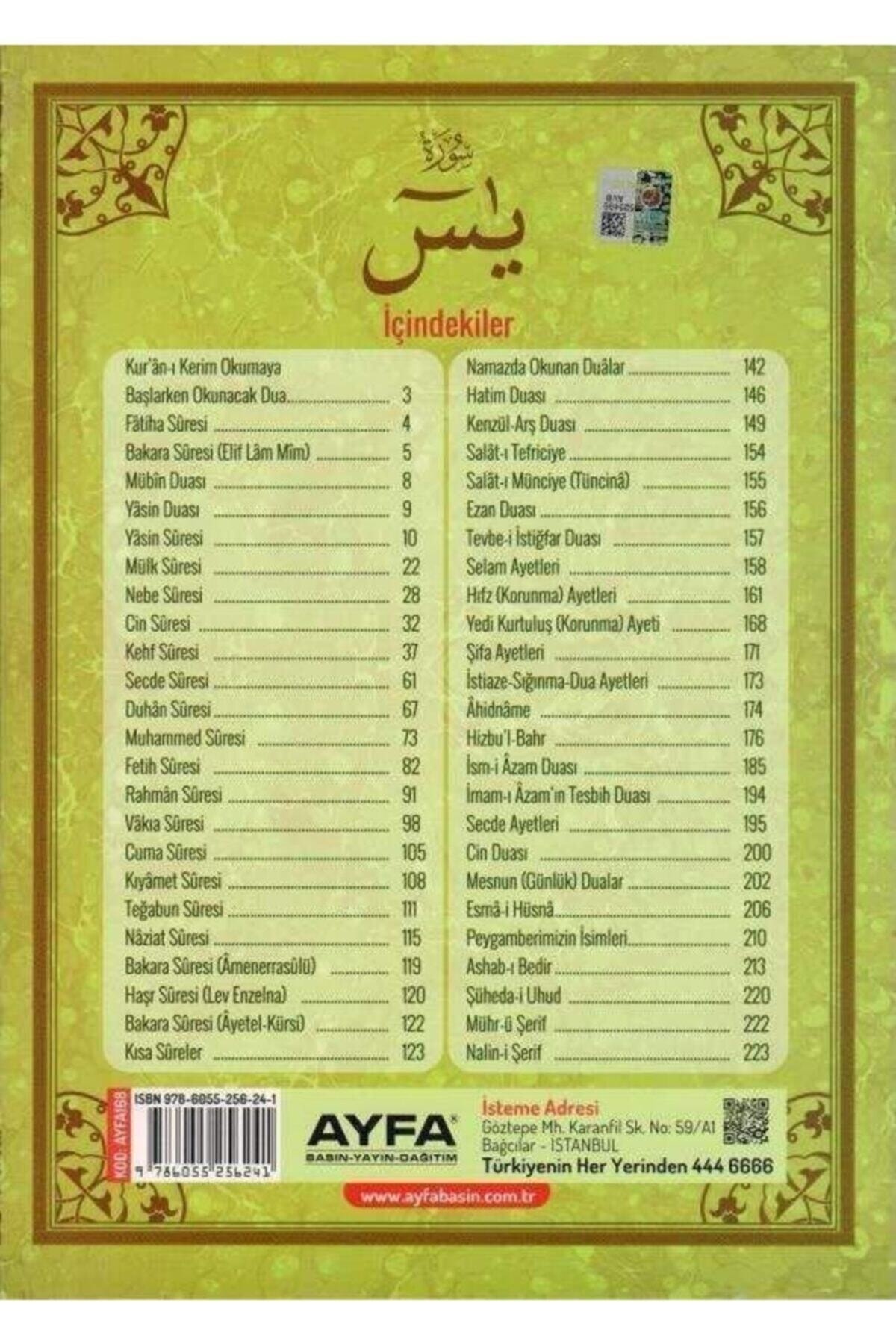 Ayfa Basın Yayın Münacat Cüzü Yasini Şerif Ve Dualar, 17×24 Cm. Orta Boy,