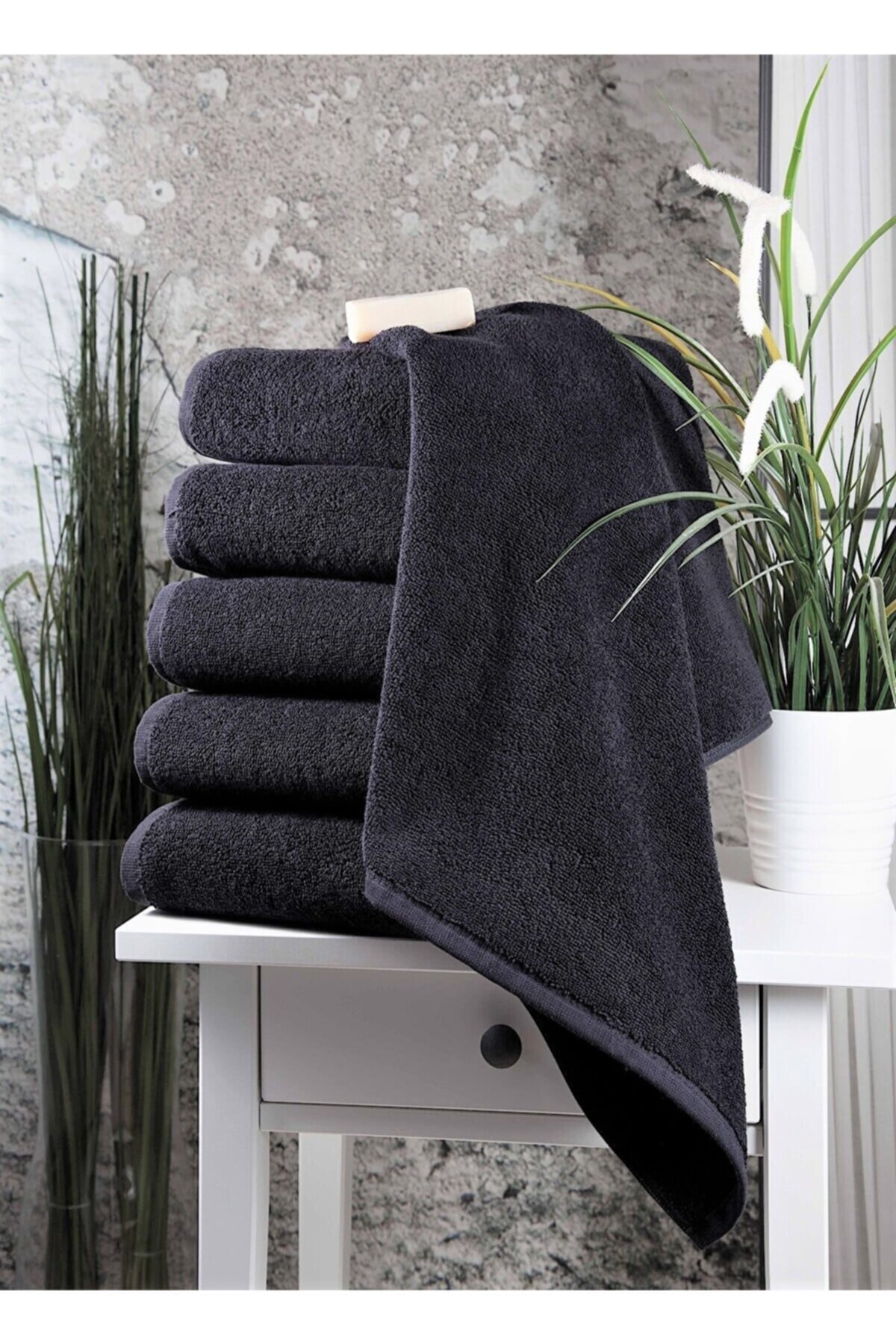 AYHANHOME %100 Pamuk Ekstra Yumuşak Antrasit 6 Adet Spor & Kuaför 50×90 El Yüz Havlu Seti