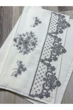 AYHANHOME 3 Adet Kadife Lüks Fransız Güpürlü Sırma İşlemeli Çeyizlik 50×90 El ve Yüz Havlusu