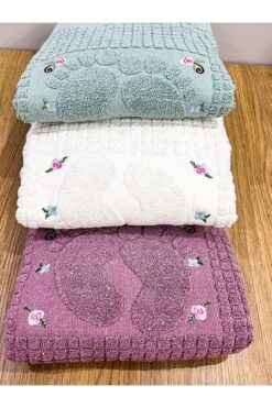 AYHANHOME 3 Adet Nakışlı Ayak Havlusu %100 Pamuk Ölçü:50×70