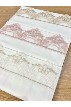 AYHANHOME 3 Lü Kadife Lüks Fransız Güpürlü Çeyizlik 50×90 El ve Yüz Havlusu