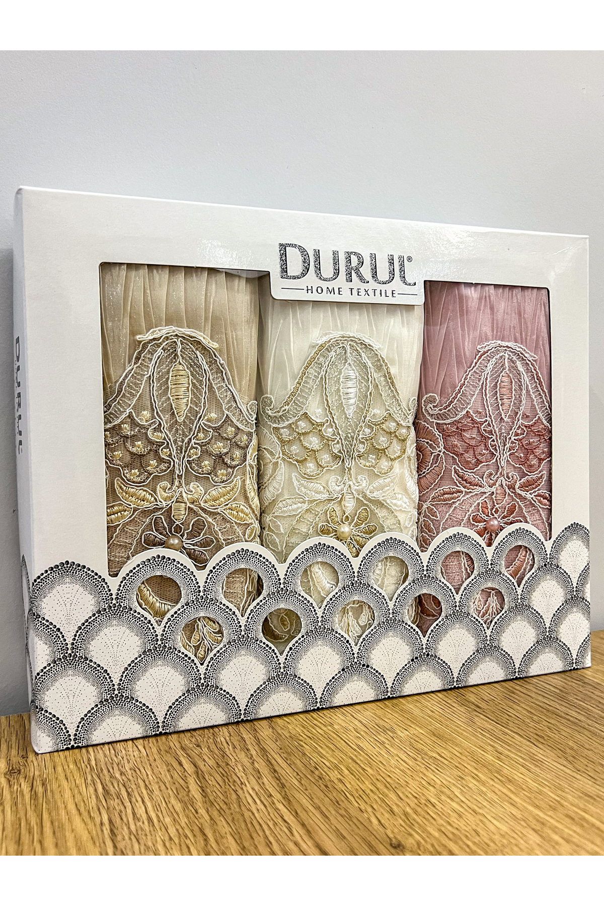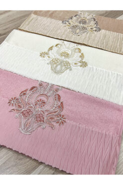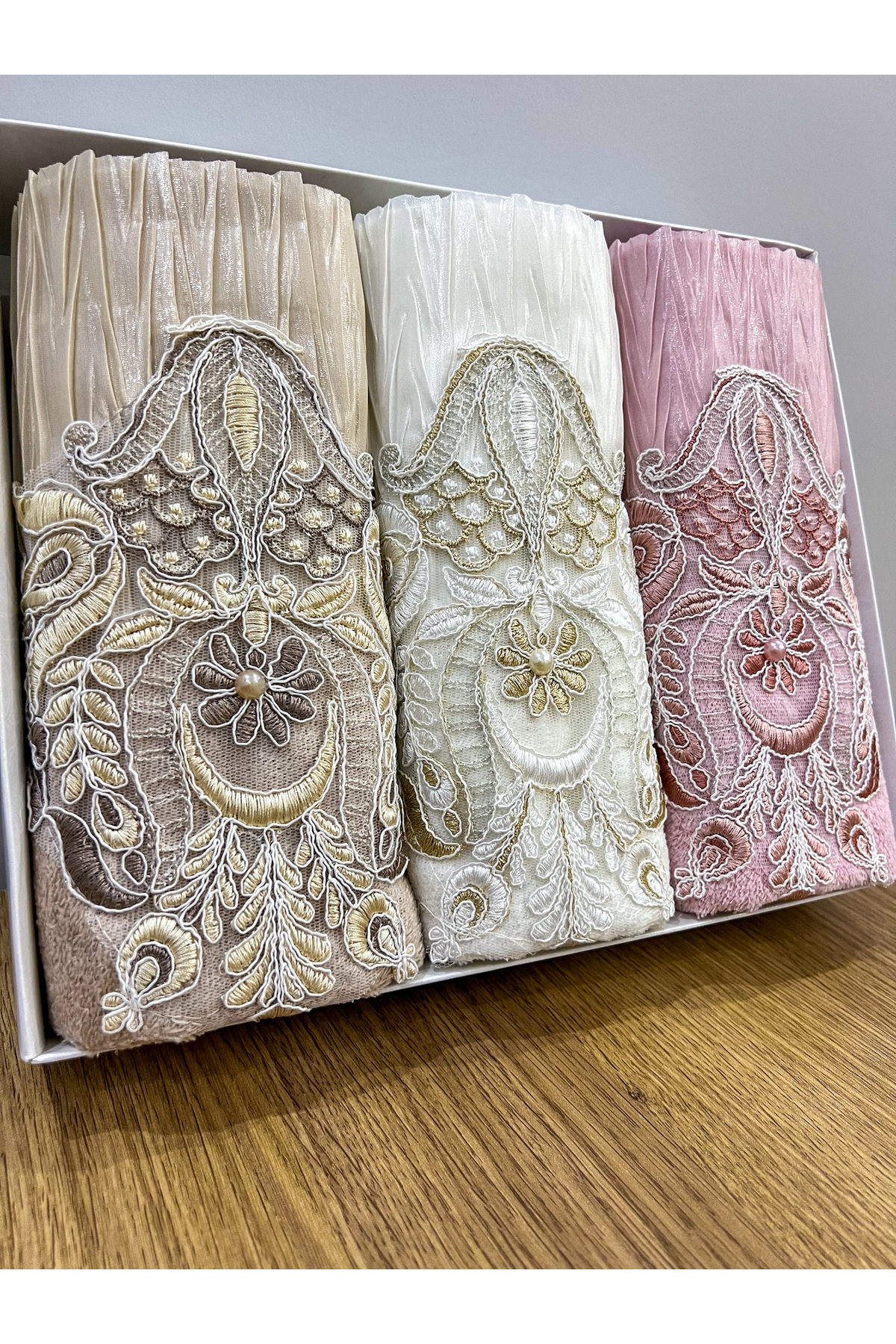 AYHANHOME 3’lü Fransız Güpür İşlemeli Kutulu Çeyizlik 50×90 Kadife El Ve Yüz Havlusu