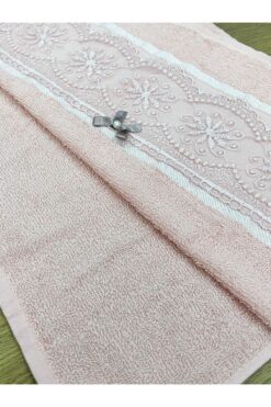 AYHANHOME 6 Adet %100 Pamuklu Güpürlü Fiyonklu Desenli 50×90 El Yüz Havlu Seti