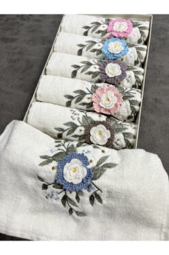AYHANHOME 6’lı 3d El İşleme Çiçek Buket Desenli Kutulu Çeyizlik 30×50 Mutfak Havlu Seti