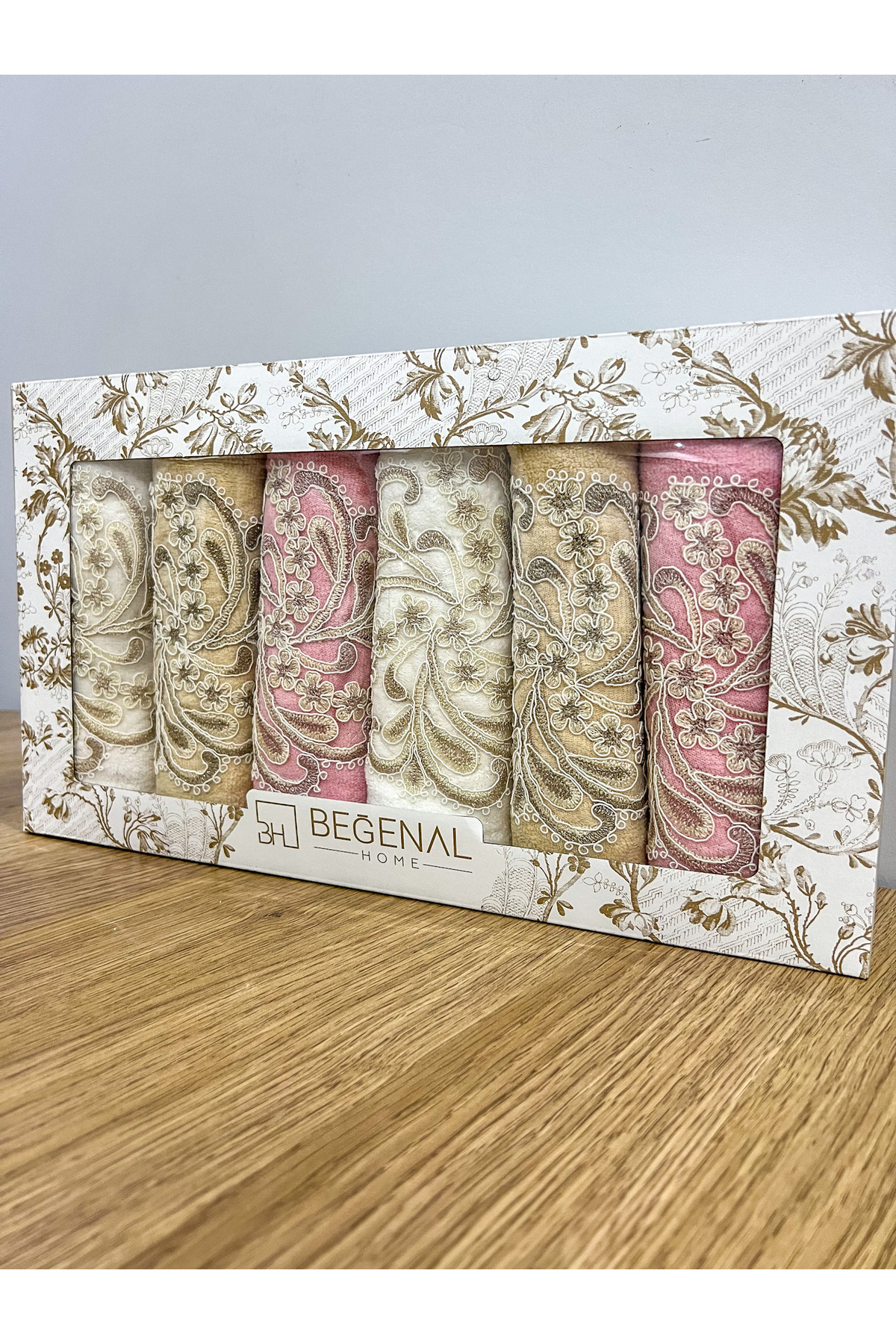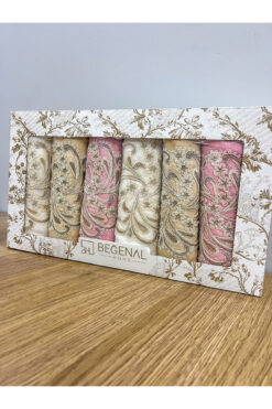 AYHANHOME 6’lı Fransız Güpür İşlemeli Desenli Lüks Çeyizlik 50×90 Kutulu El Yüz Havlu Seti