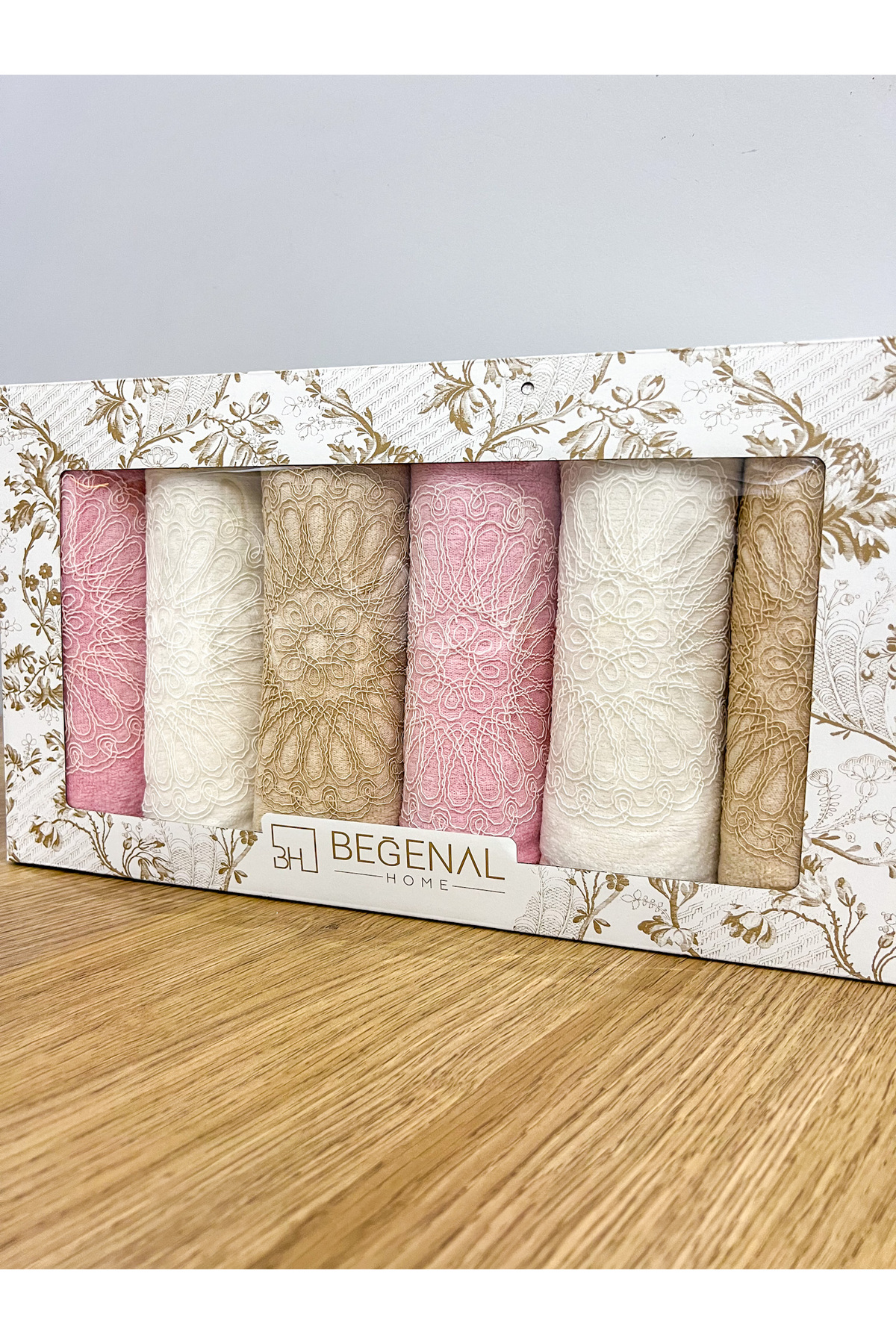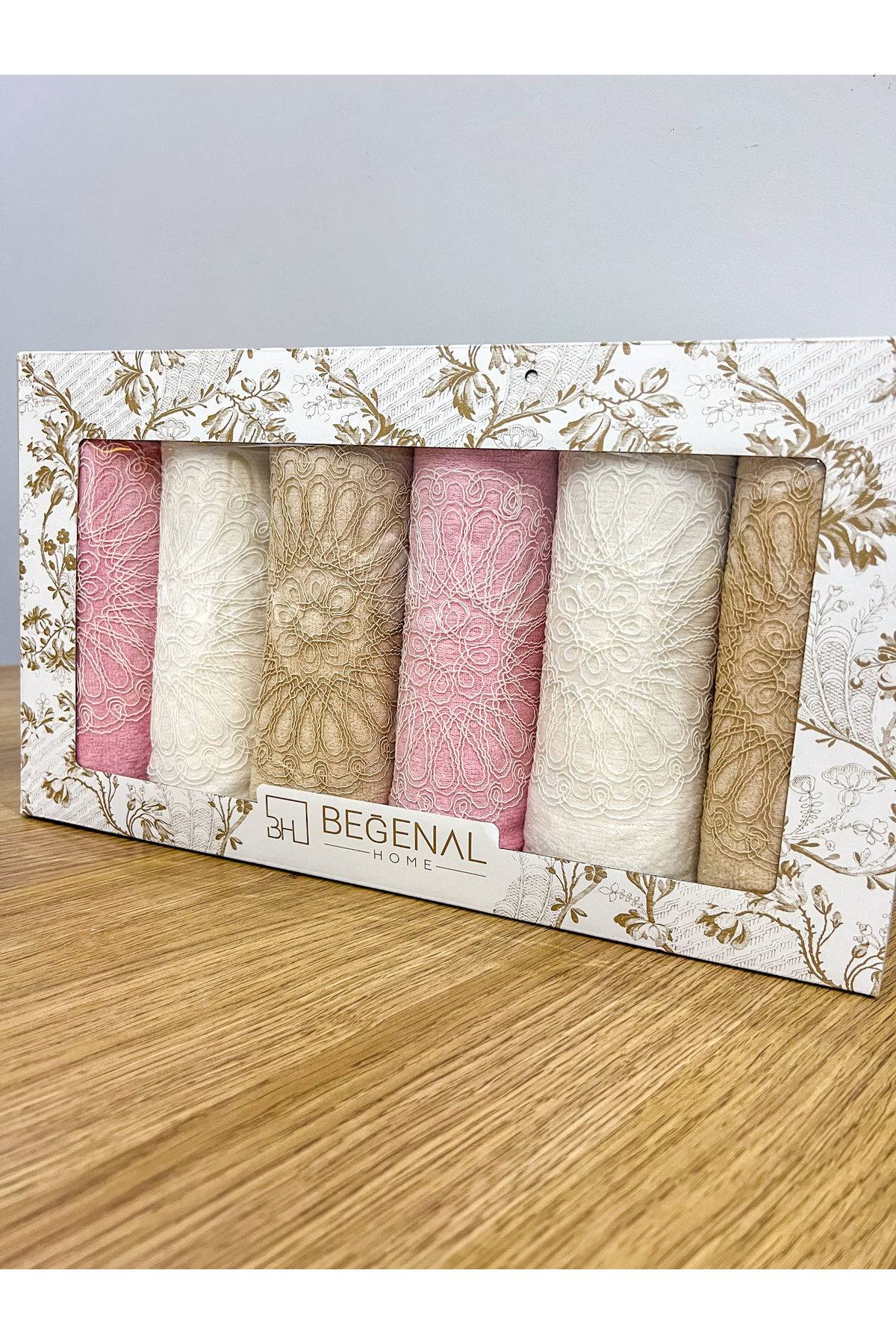 AYHANHOME 6’lı Fransız Güpür İşlemeli Desenli Lüks Çeyizlik 50×90 Kutulu El Yüz Havlu Seti