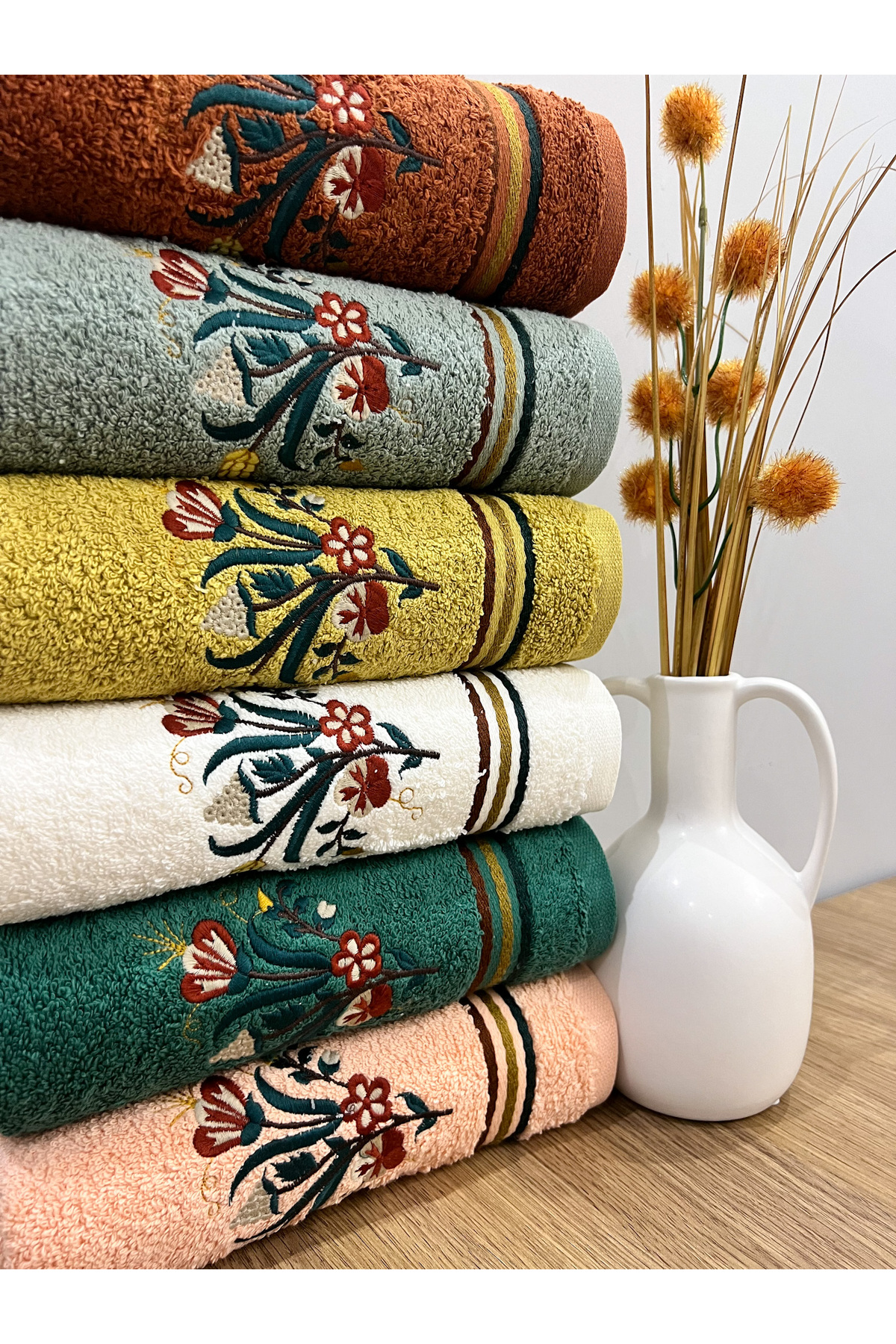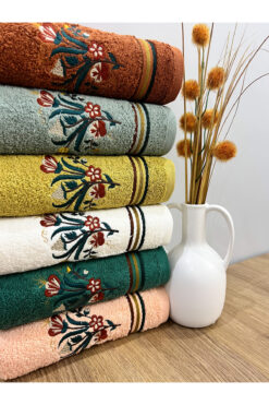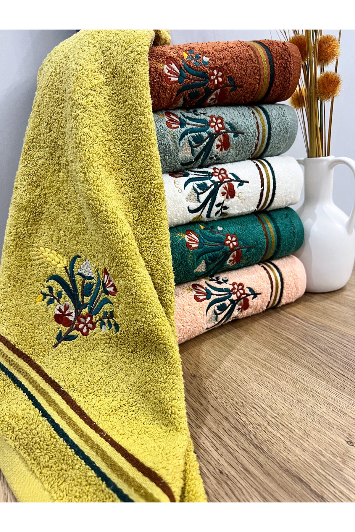 AYHANHOME 6’lı Jakarlı Nakış Işleme Çeyizlik Hediyelik Renkli Çantalı 50×90 El Yüz Havlu Seti