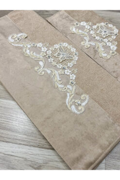 AYHANHOME Fransız Güpür İşlemeli Kadife Çeyizlik 1 Adet 50×90 El Yüz Havlusu 1 Adet 30×50 Mutfak Havlu