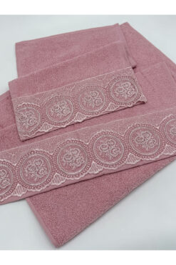 AYHANHOME Fransız Güpürlü Taşlı Kutulu Çeyizlik 3 Adet 50×90 El Yüz Havlusu 3 Adet 30×50 Mutfak Havlu