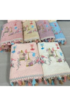 AYHANHOME Kuş Kafes Nakışlı Pamuklu Püsküllü 6’lı 30×50 Mutfak Havlu Seti