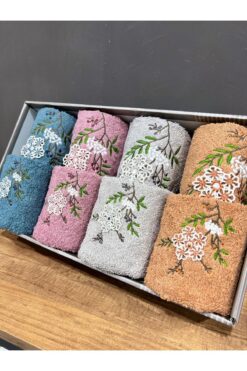 AYHANHOME Nakış Işleme Desenli Kutulu Çeyizlik Hediyelik 8’li 4 El Yüz & 4 Mutfak Havlu Seti