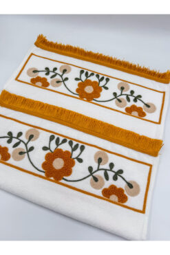 AYHANHOME Punch Nakışlı Saçaklı 2 Adet 50×90 El Yüz Havlu Seti