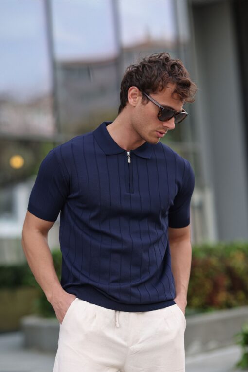 aziso Erkek Polo Yaka Yarım Fermuarlı T-shirt