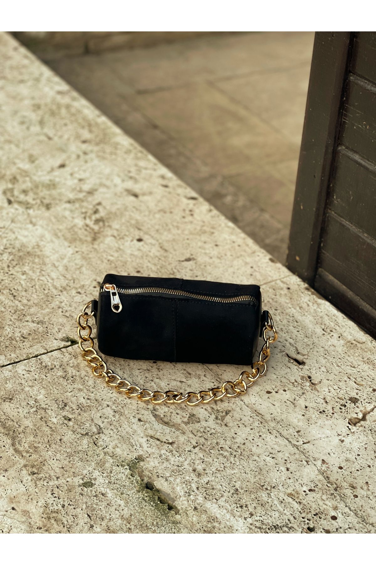 B Bag Official Mina Siyah Süet Silindir Mini Çanta