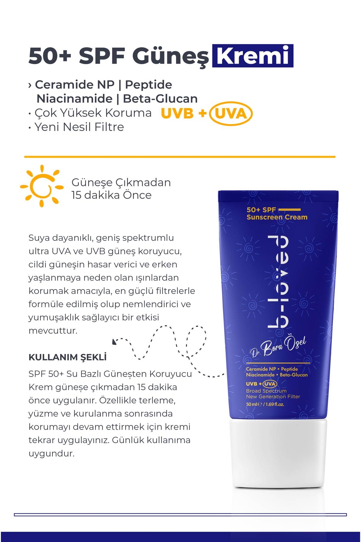 b-loved Yeni Nesil Suya Dayanıklı SPF 50+ UVA UVB Güneş Koruyucu Krem 50 mL