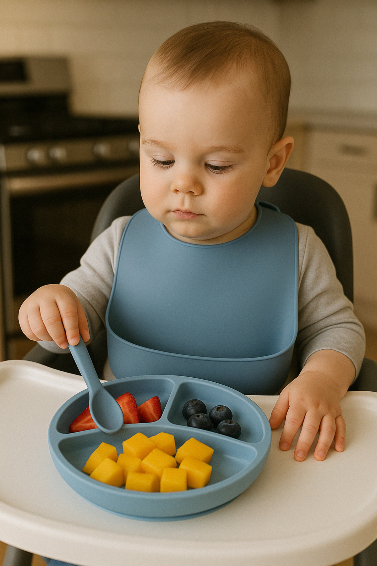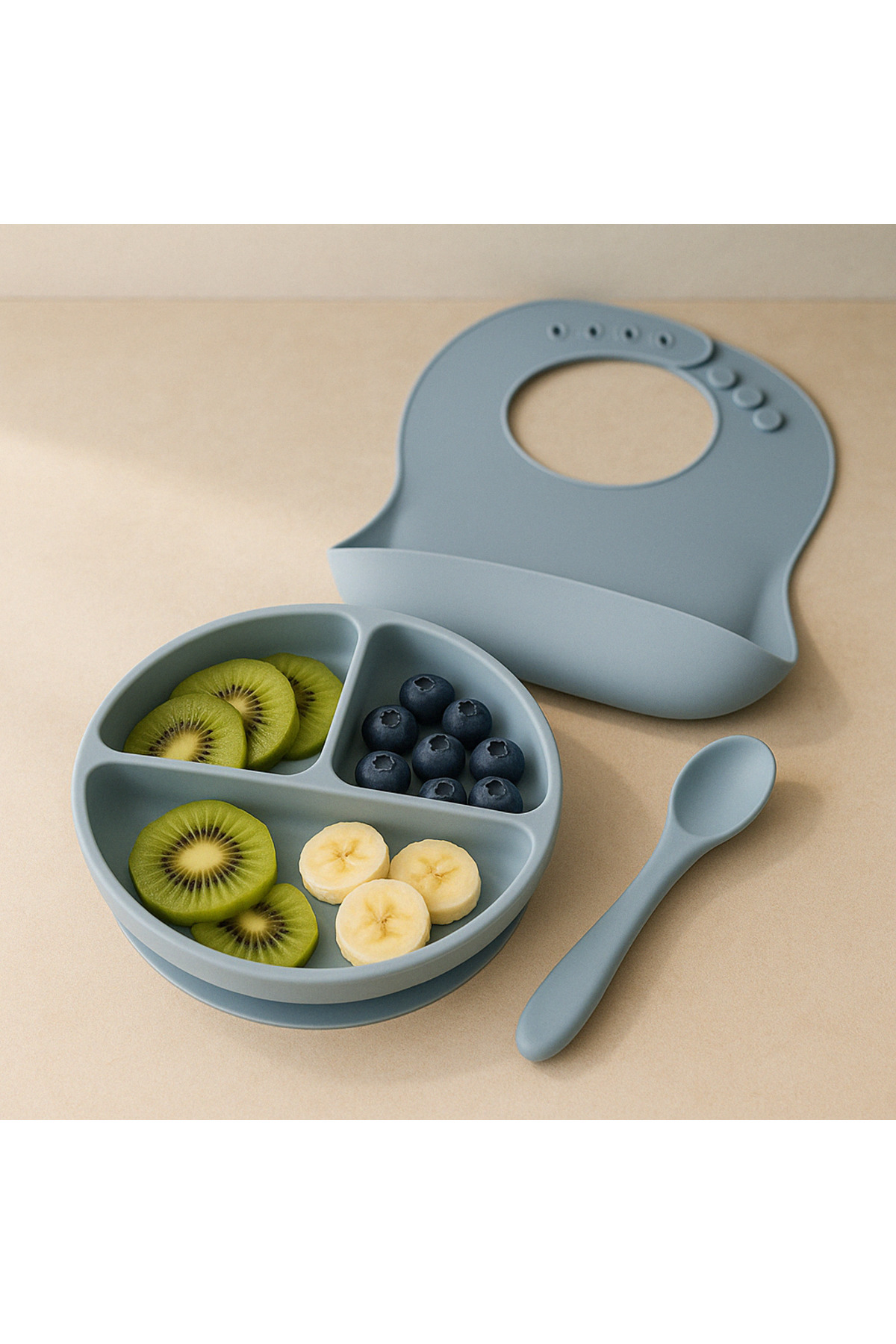 Baby Bebek Silikon Vakumlu Mama Tabağı Kaşık Önlük Seti