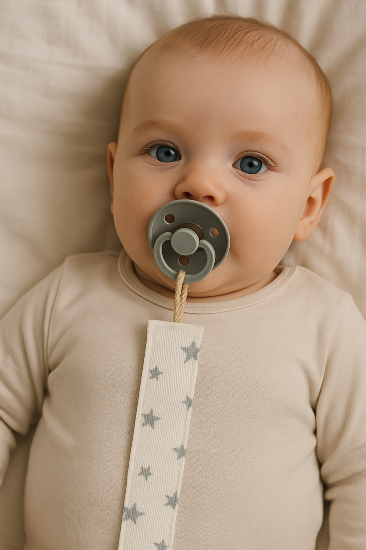 The Cloudish Shop Bebek Pamuk Müslin Fiyonklu emzik askısı ahşap kancalı – Bej Kahve