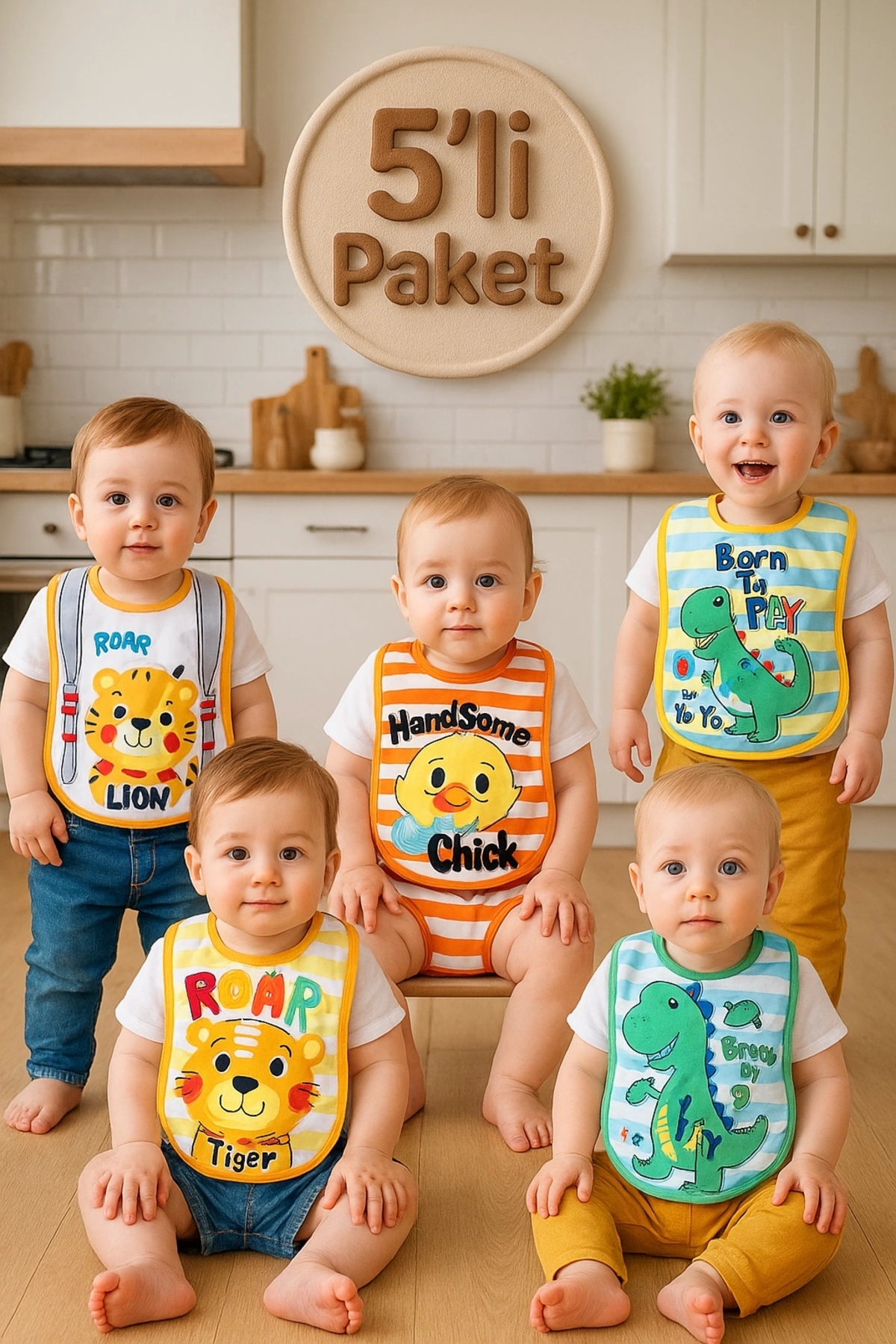 Babydonat Zoo 5’li Sıvı Geçirmez Bebek Mama Önlüğü 0-18 Ay