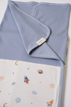 BABYLİM Erkek Bebek Uzay Baskılı Çift Taraflı %100 Pamuk Battaniye 85x90cm