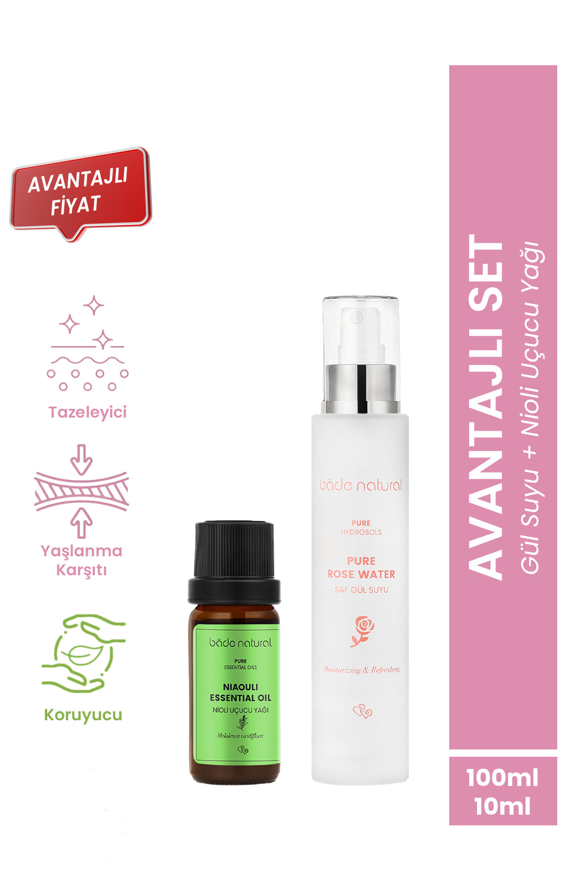 Bade Natural Gül Suyu Aydınlatıcı ve Arındırıcı Tonik & Nioli Uçucu Yağ