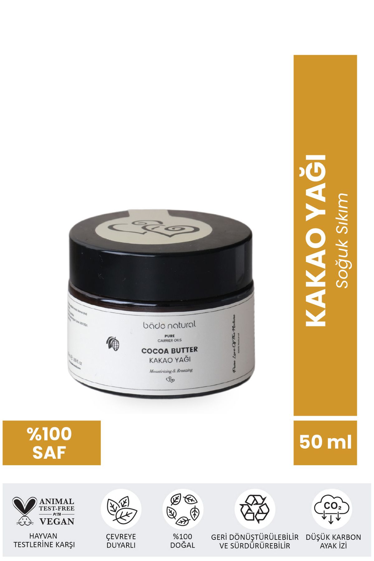 Bade Natural Kakao Yağı Soğuk Sıkım %100 Saf 50 ml ürünü ucuz fiyat, hızlı kargo ve kredi kartına 12 ay taksit imkanı ile hemen sitemizden sipariş verin.