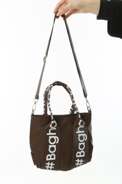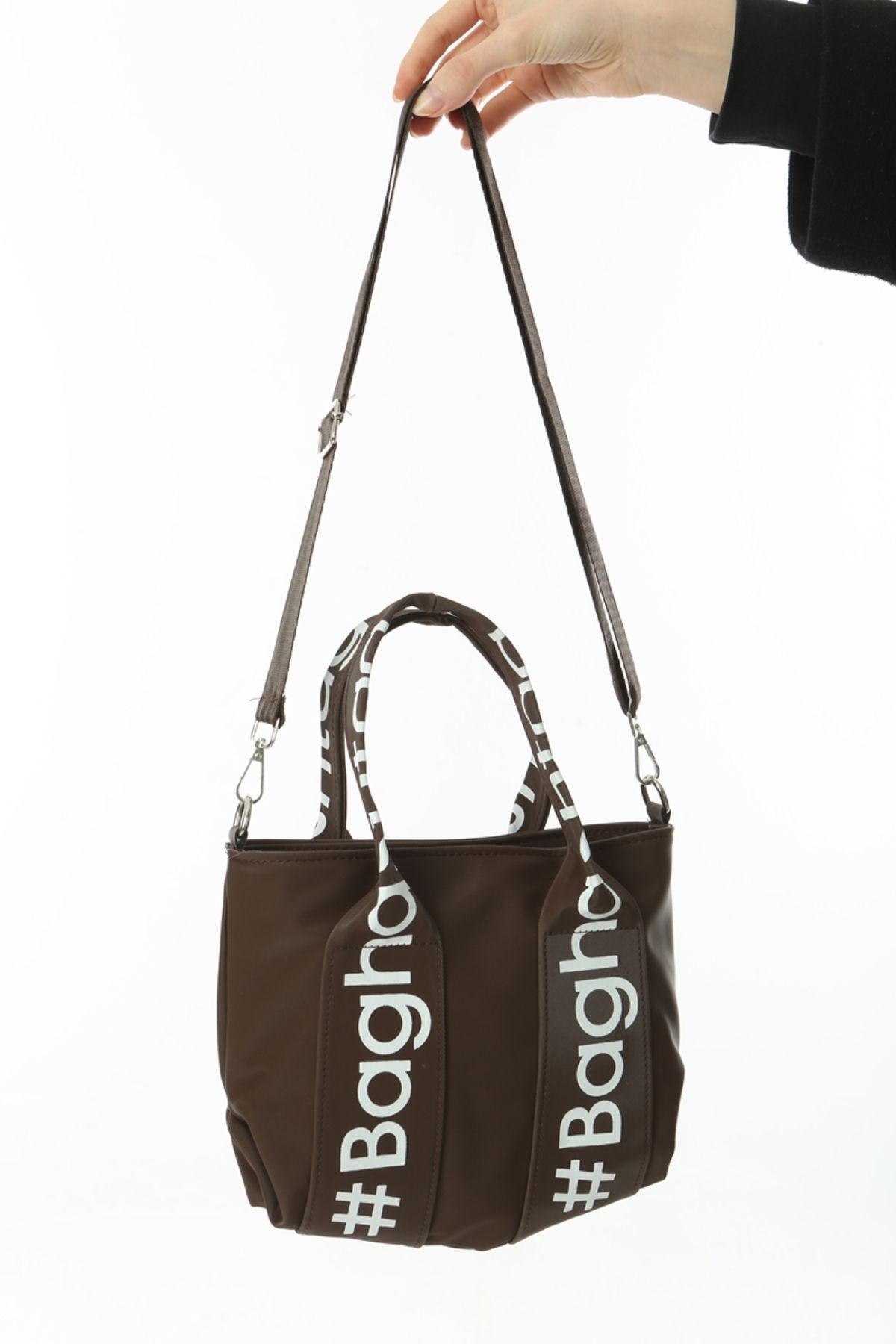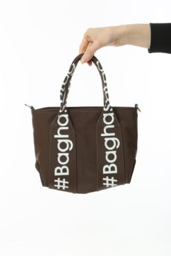 Baghashtag Kahverengi Mini Su Geçirmez Kulp Yazılı Tote Çanta