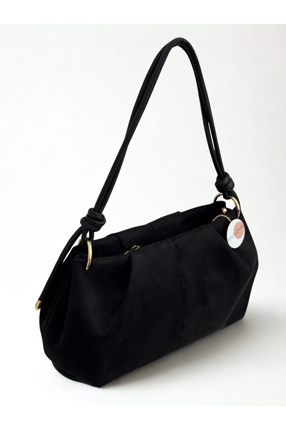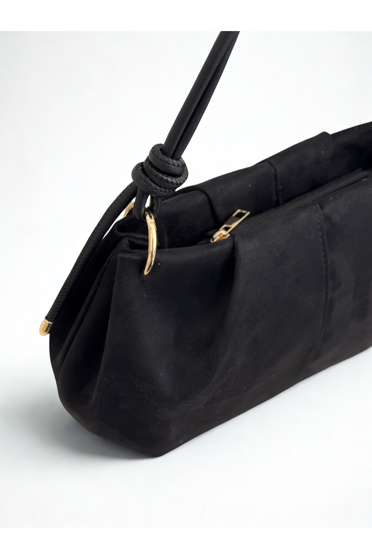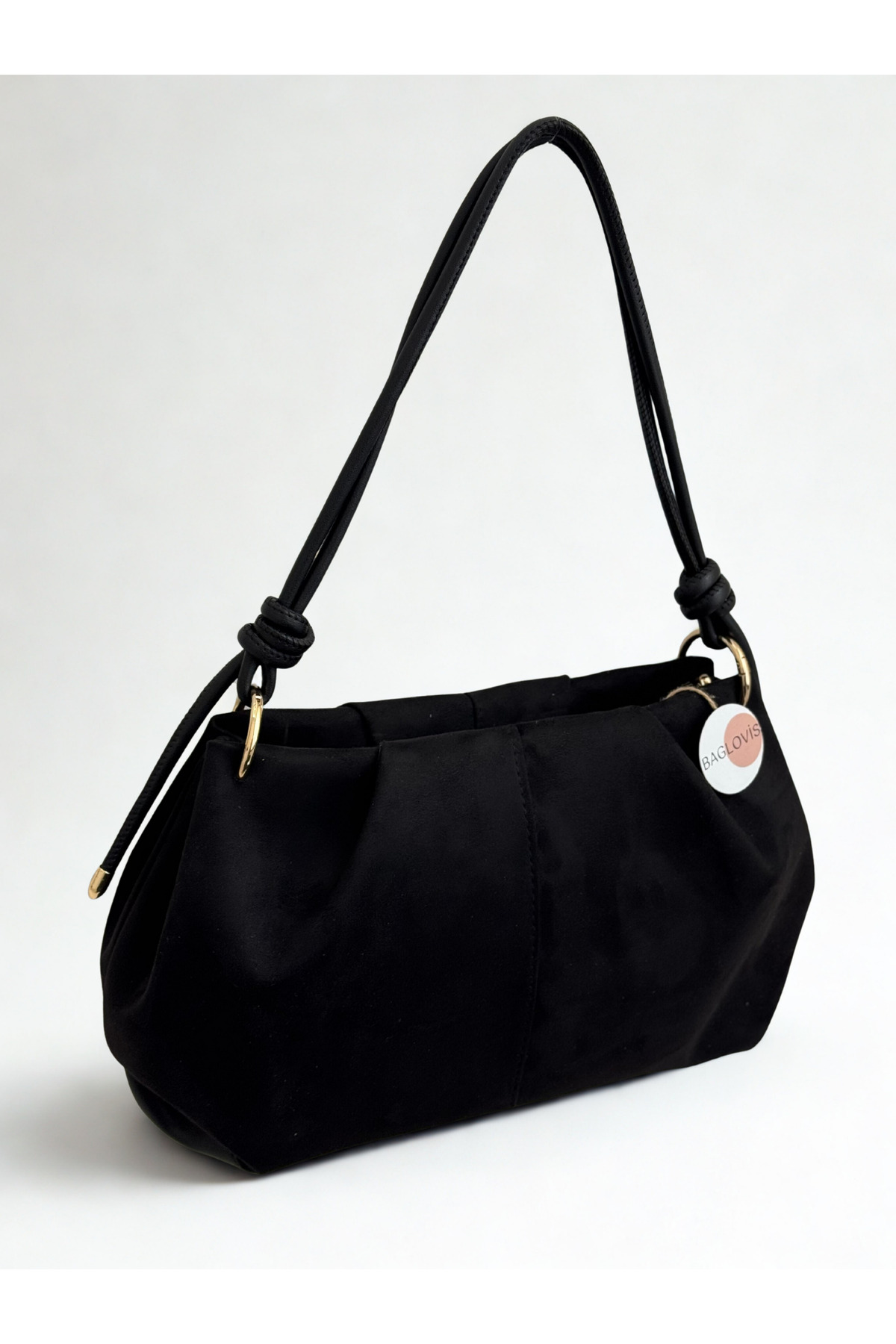 BAGLOVİS ASKISI DÜĞÜM DETAYLI ORTA BOY SÜET SİYAH KADIN OMUZ ÇANTASI EN35 BOY20