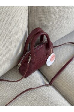 BAGLOVİS KROKO DERİ MİNİK EL VE ÇAPRAZ BORDO KADIN OMUZ ÇANTASI EN18 BOY12