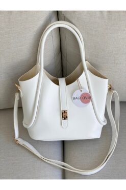 BAGLOVİS YAVRU ÇANTA EKSTRALI ÖNÜ KİLİT DETAYLI BEYAZ KADIN OMUZ ÇANTASI