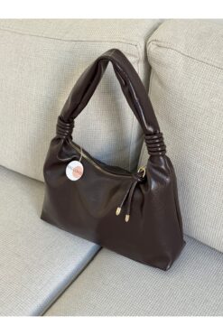 BAGLOVİS Yumuşak Deri Görünümlü, Büzgü Askılı, Günlük , Şık , Kahve Kadın Omuz Çantası En35 Boy20