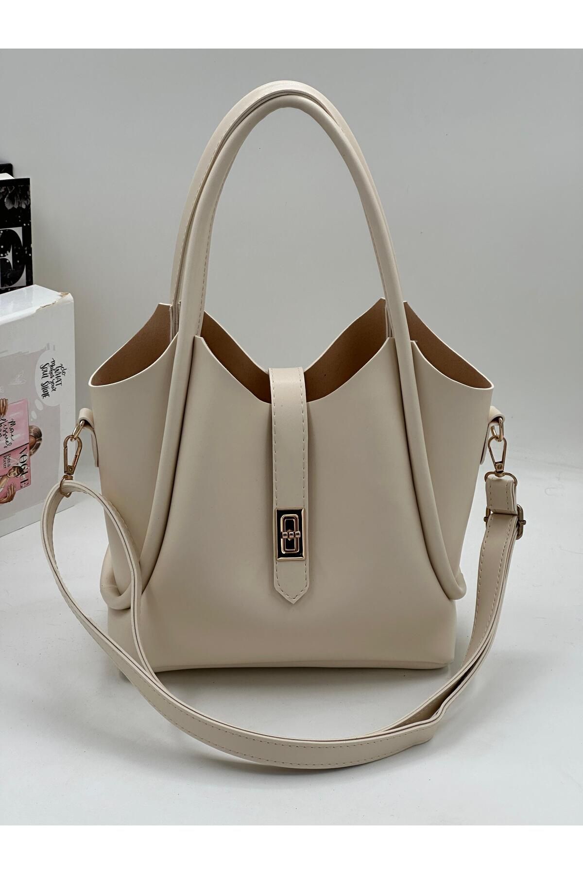 bag&more Demir Toka Kemerli Çift Askılı Makyaj Çantalı Zarif Suni Deri Kadın El Ve Omuz Çantası