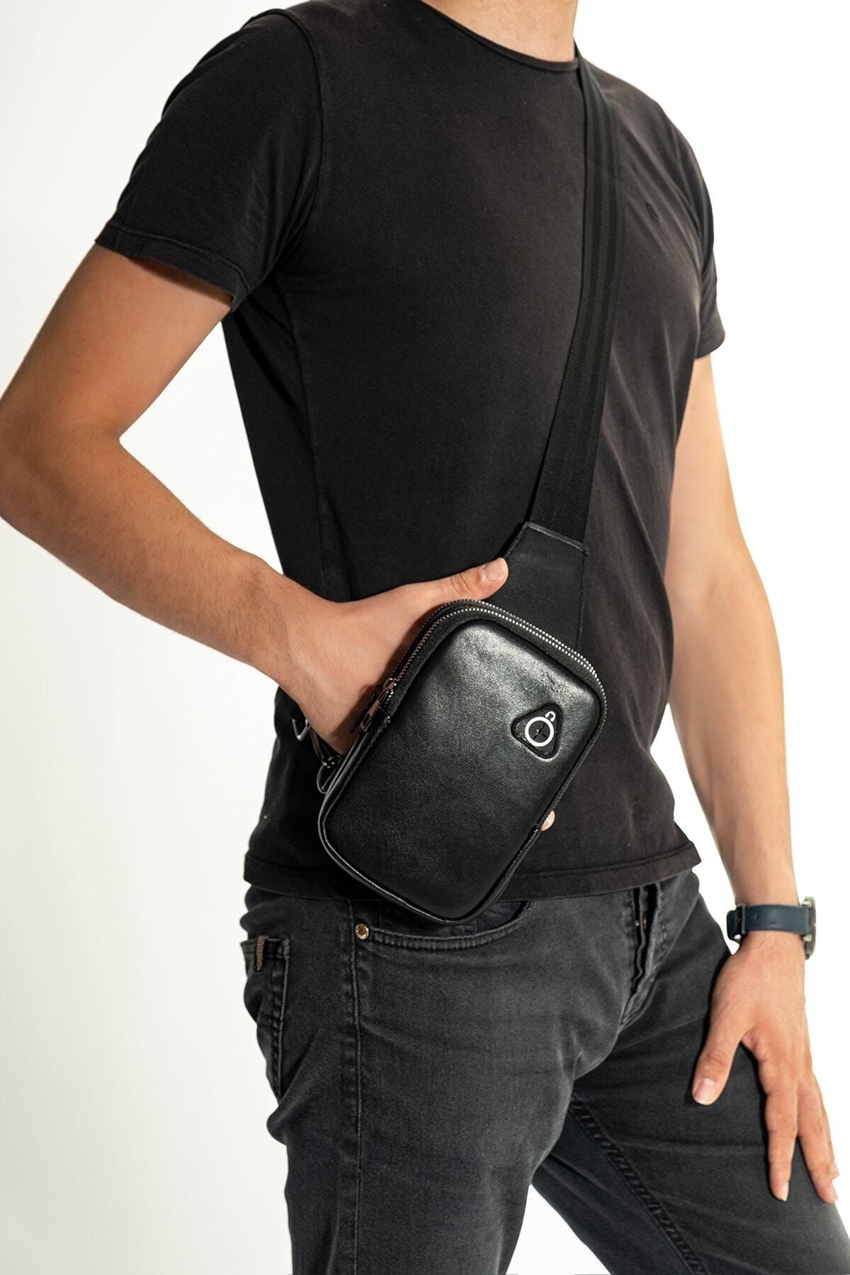 BAGzy Siyah Çift Gözlü Çapraz Göğüs Omuz Çantası