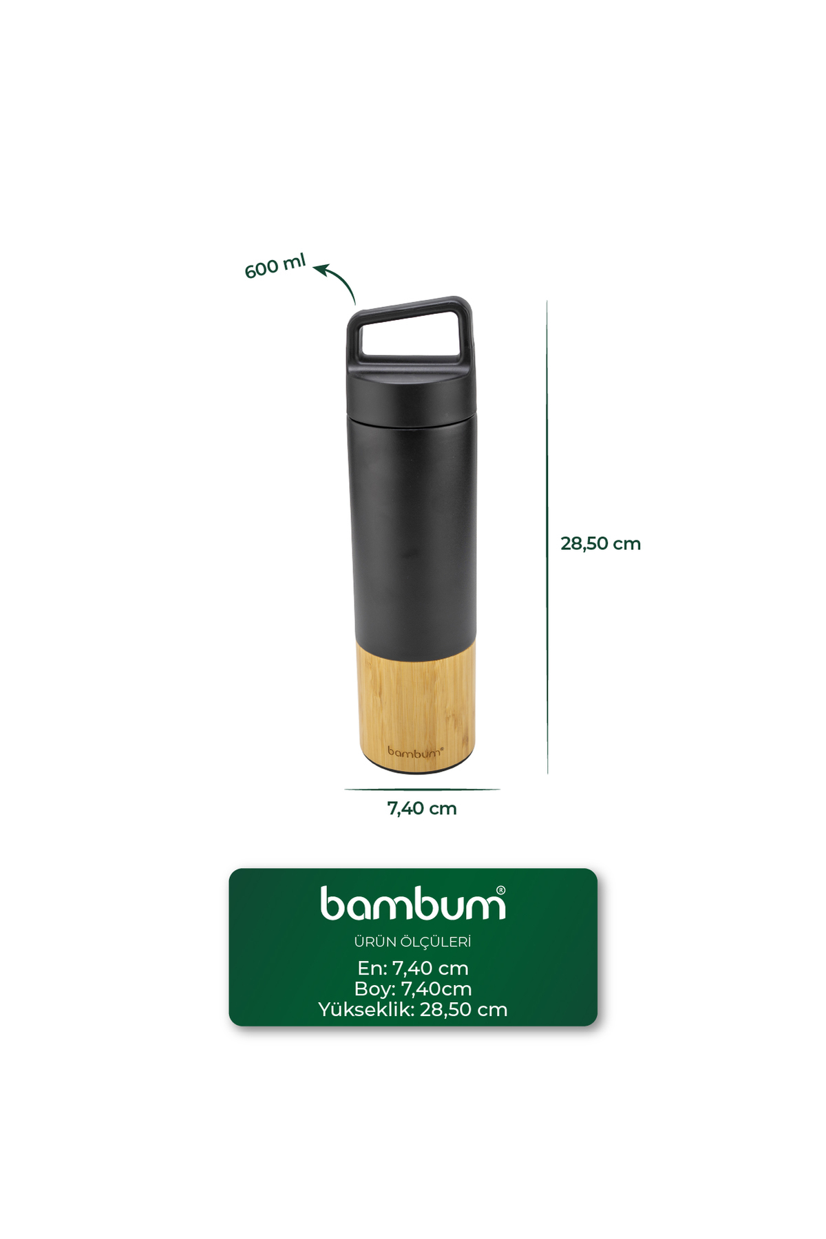 Bambum Janna Bambu Desenli El Termosu Siyah 600ml