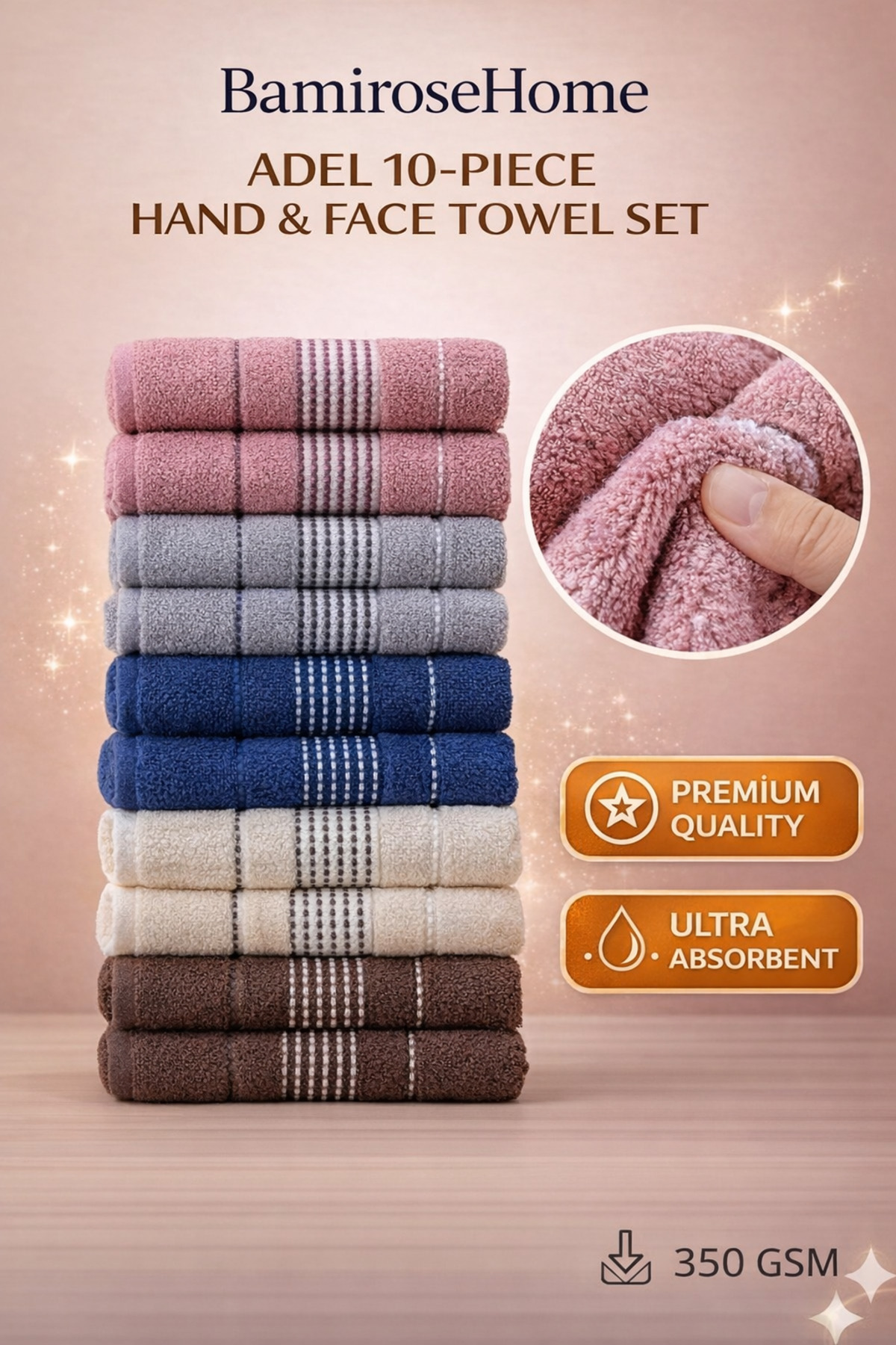 BAMİROSE 50x90 CM 10'LU ADEL EL & YÜZ HAVLU SETİ ürünü ucuz fiyat, hızlı kargo imkanı ile hemen sitemizden sipariş verin.