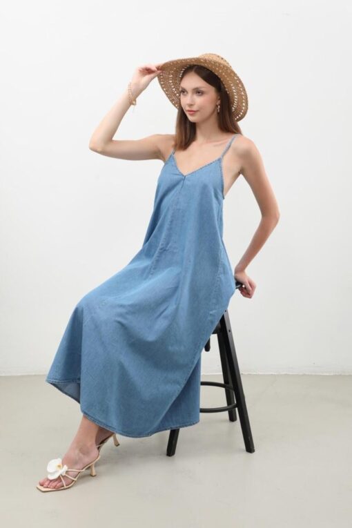 BANNY JEANS Kadın İnce Askılı Jean Elbise