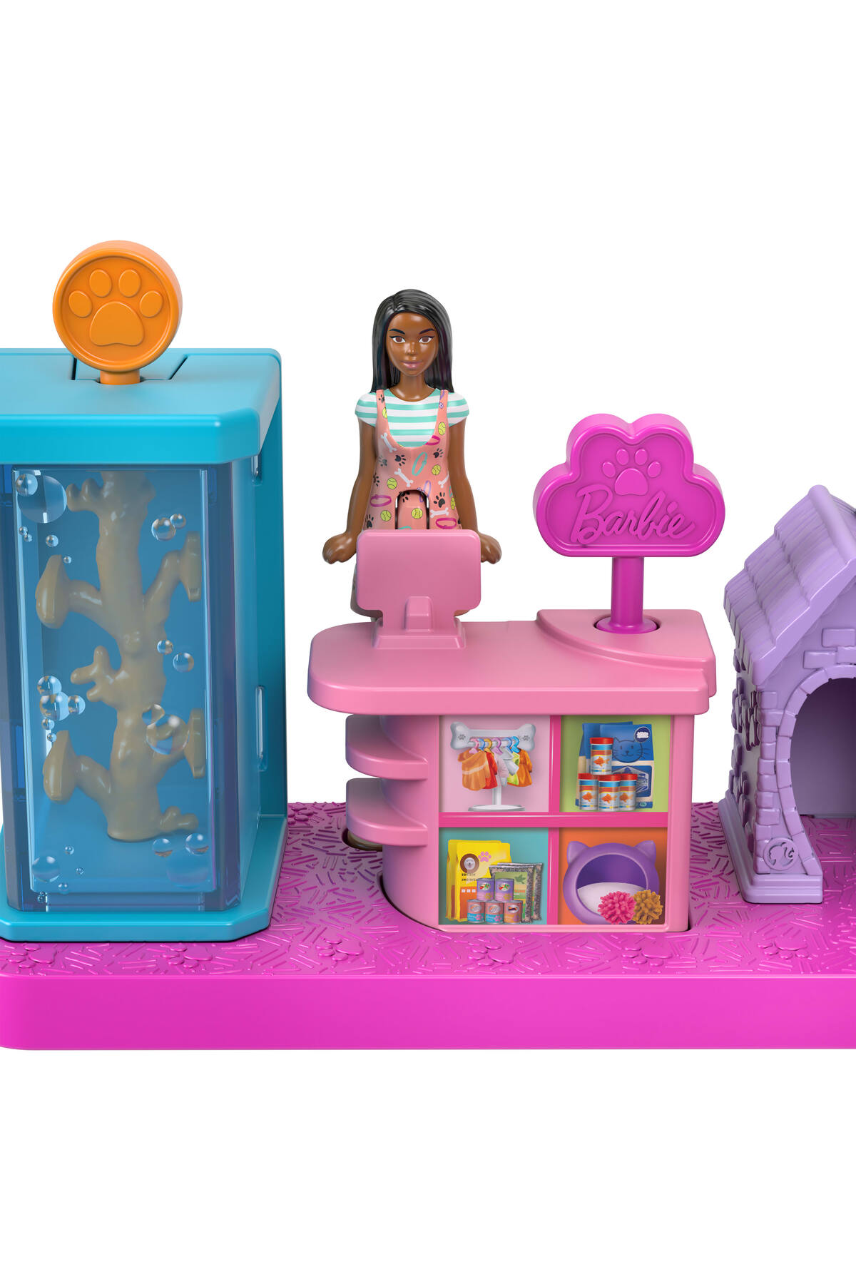 Barbie Mini BarbieLand™ Bebek ve Oyun Seti, 4 cm’lik Barbie bebek ile Evcil Hayvan Butiği JCR30