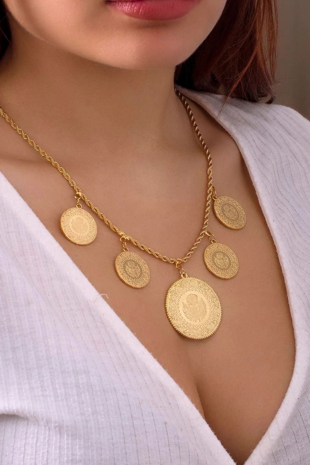 barisiva gold Altın Kaplama Beşi Bir Yerde Kolye (halat Zincirli)