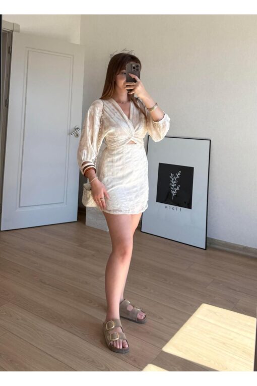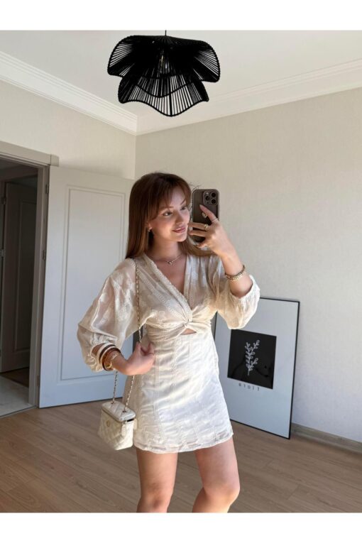 Ana Sayfa » kozmetikara.com » Giyim » Elbise » BAŞARAN Bej Ön Düğümlü İşlemeli Elbise
