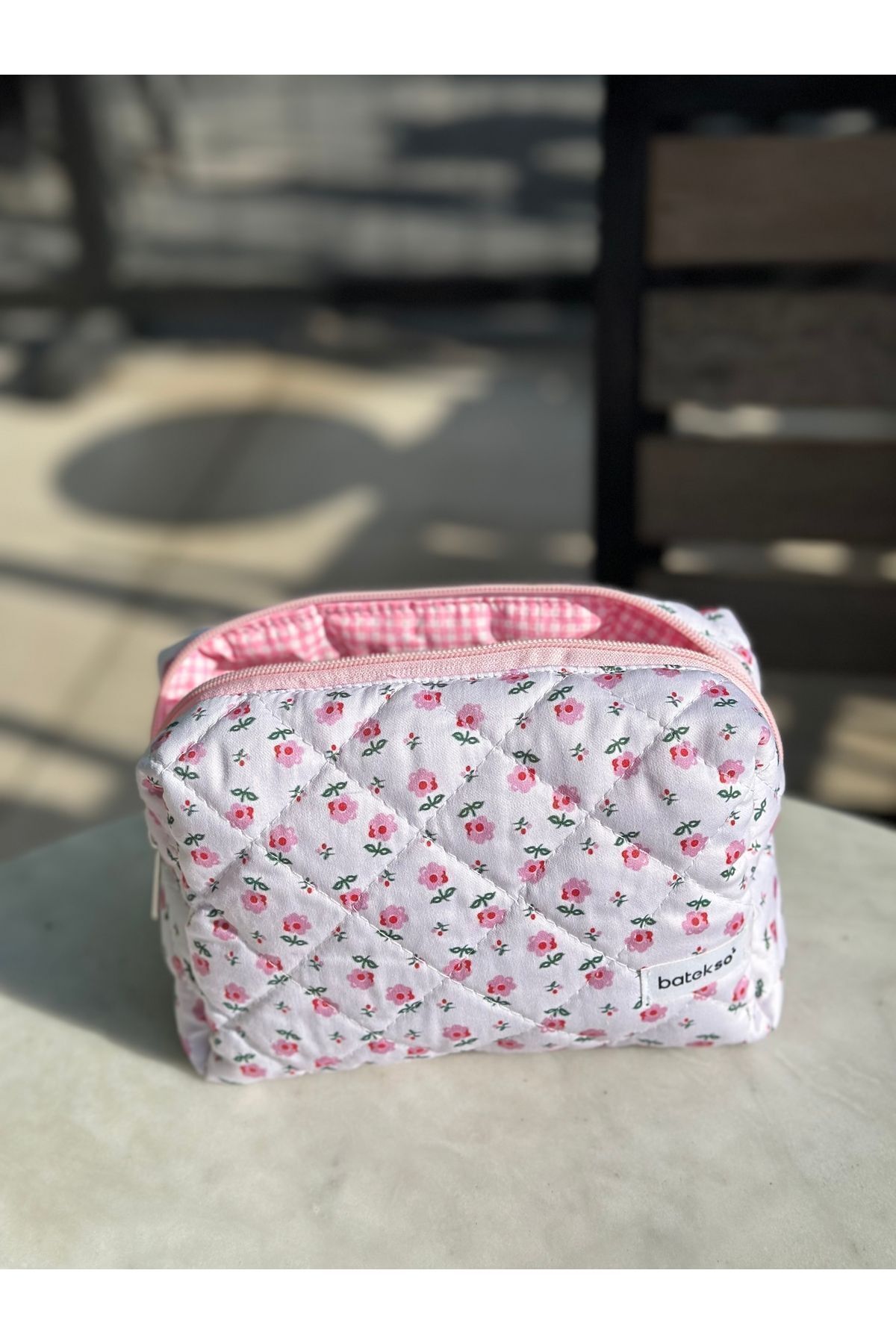 Batekso Minik Pembe Çiçek Desenli Makyaj Çantası – Büyük Boy.