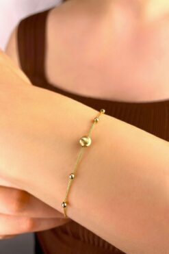 kuyumcu nurettin 2.00 gr (GRAM) 3.5 Mm Pullu Halep Orta Kalın Bileklik Künye 14 Ayar Altın 19 Cm