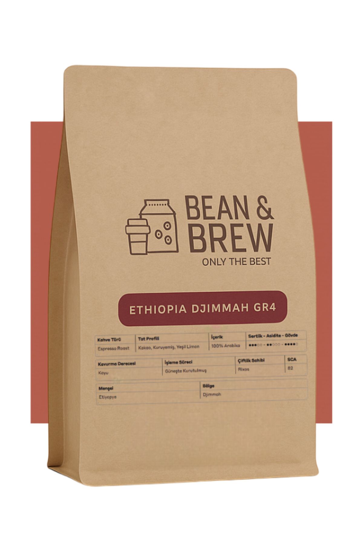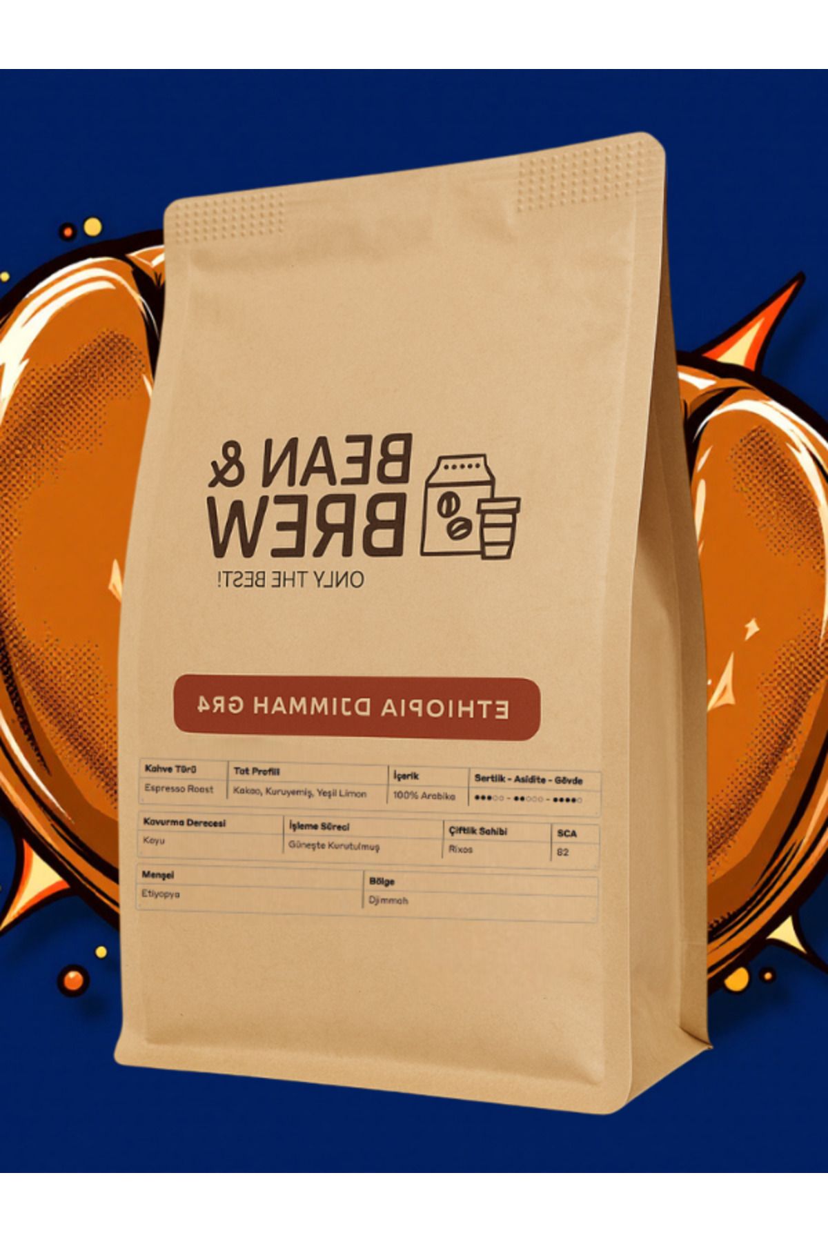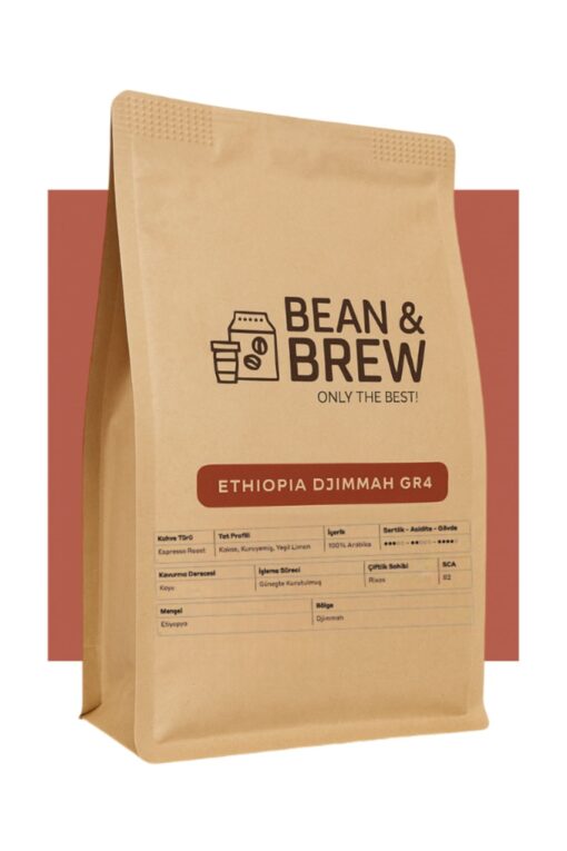 Bean & Brew Etiyopya Djimmah Espresso Kahve 500g – Kakao, Kuruyemiş, Yeşil Limon Aromalı %100 Arabica