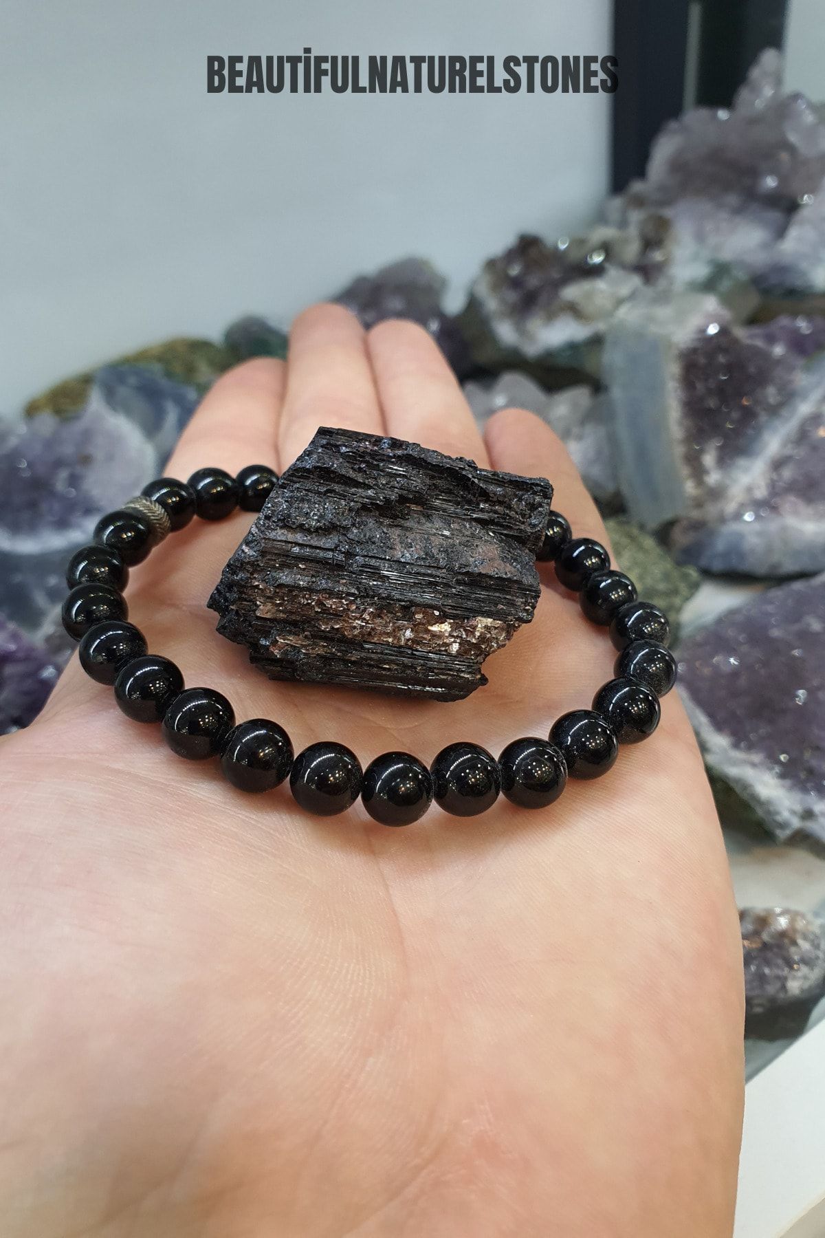 beautifulnaturelstones Siyah Turmalin Doğaltaş Bileklik ( Ham Taş Hediyeli ) (radyasyon Ve Elektromanyetik Alan Temizliği )