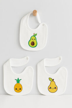 Bebe wini %100 Pamuk Penye Çift Katlı 3’lü Meyve Desenli Mama Önlüğü