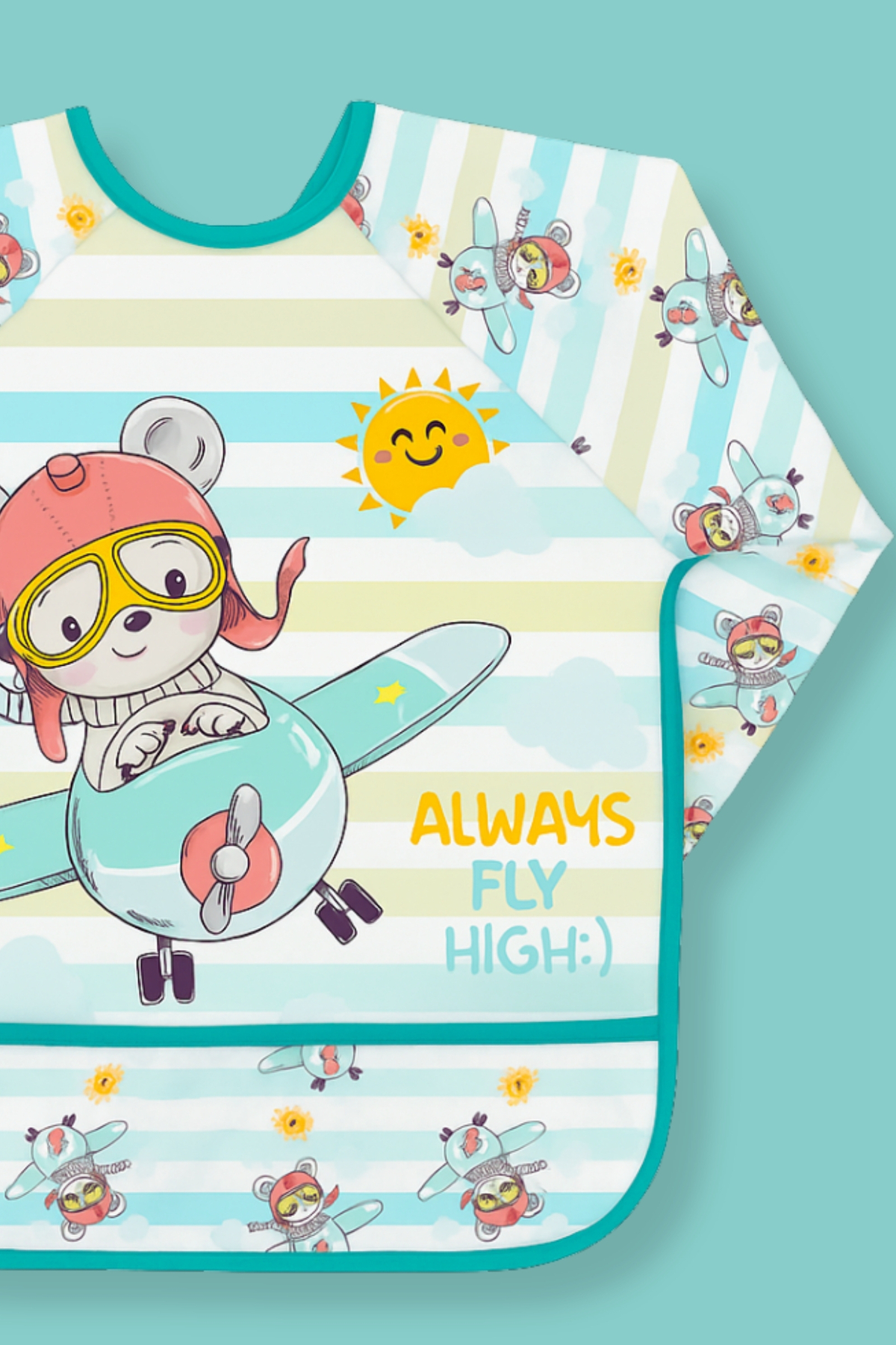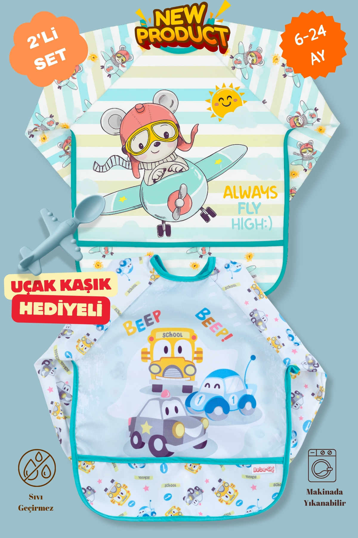 Bebechi 2’Li Uzun Kollu Giyilebilir Uçak-Araba Desen Sıvı Geçirmez Aktivite ve Mama Önlüğü 6-24 AY