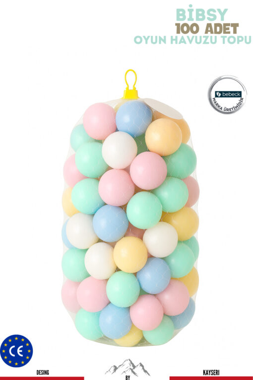 Bebeck Bibsy Oyun Havuz Topu Şişme Yeni Renkler Premium Kalite 100 Adet Fileli