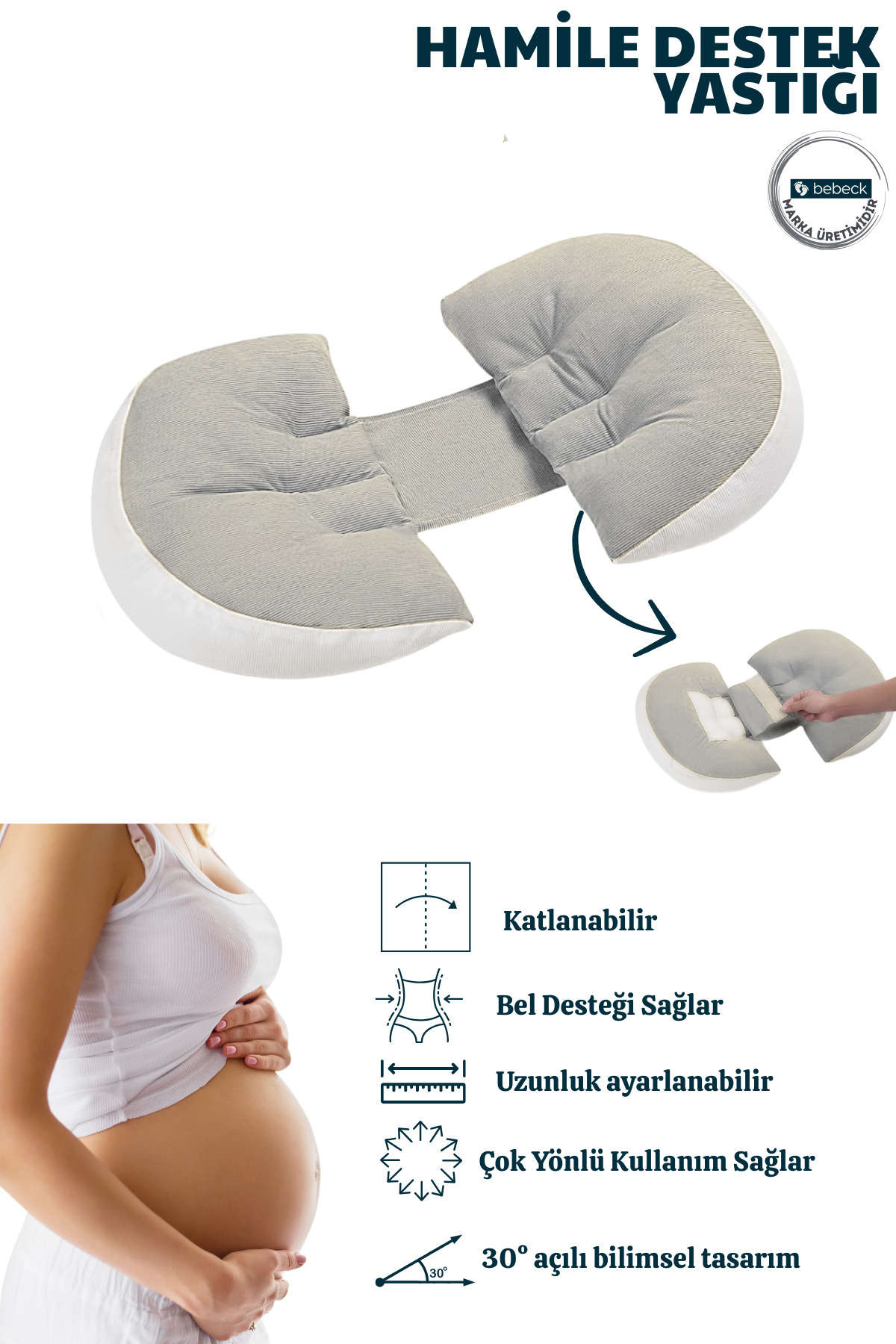 Bebeck Çok Fonksiyonlu Hamile Destek Yastığı Katlanabilir Ayarlanabilir Destekli Hamile Yastığı ürününü en uygun fiyata kozmetikara.com sitemizden sipariş verebilirsiniz.