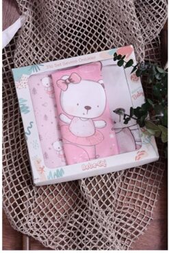 BEBENAZ PEMBE AYI TEMALI KARE 3’lü bebek MAMA ve SALYA ÖNLÜĞÜ KENDİ KUTUSUNDA (SIVI GEÇİRMEZ) ÇITÇITLI